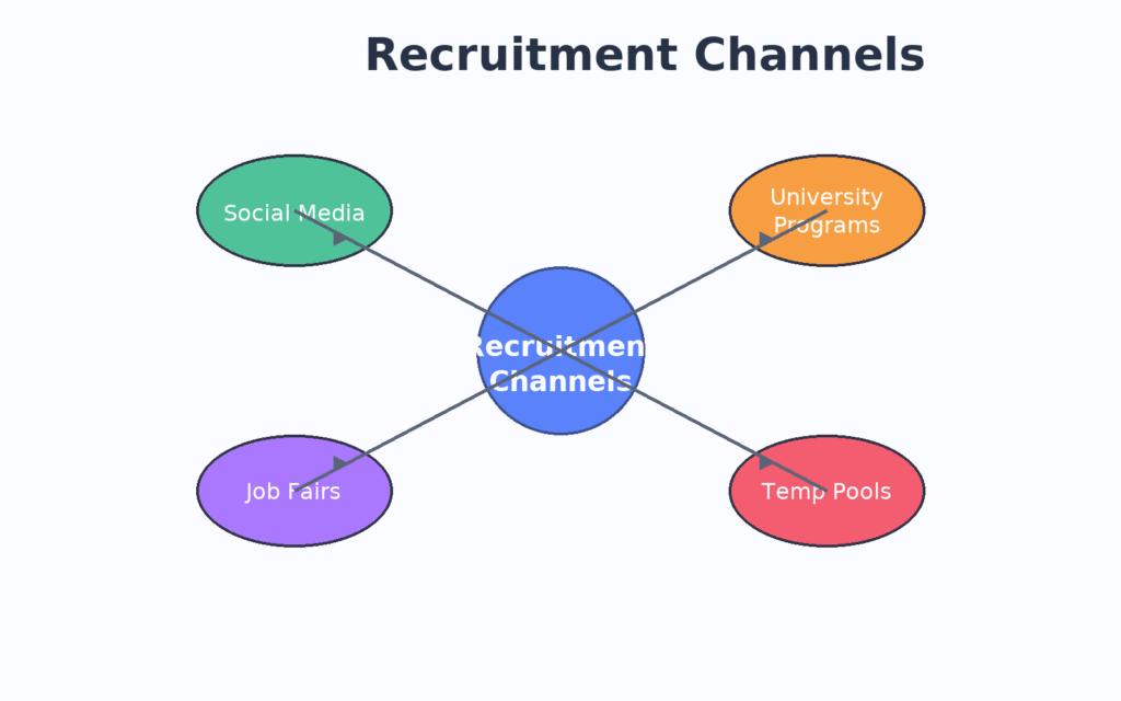 Employers can make the best use of still untapped resources by widening the outreach for candidates. Candidate sourcing via recruitment marketing campaigns, targeted job fairs, and social media is a good way to expand company reach. Also, employing contingent workers or setting up temp staffing pools helps mitigate the seasonal or unexpected shortage of employees.